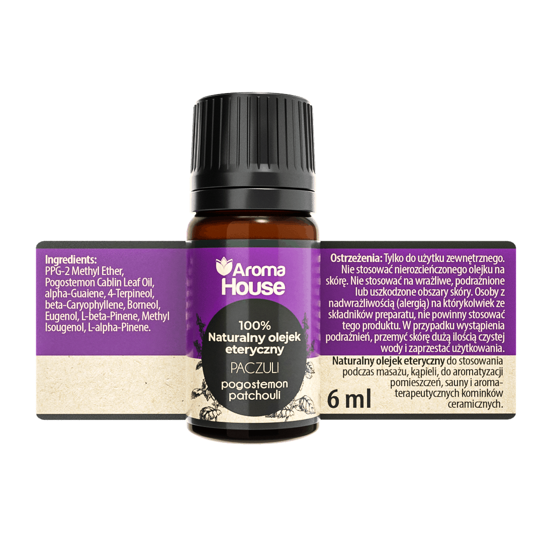 100% Naturalny Olejek Eteryczny od Aroma House. Charakteryzuje się ziemistym, drzewnym i egzotycznym zapachem (Pogostemon cablin). Pojemność: 6 ml. Posiada certyfikaty IFRA oraz rejestrację CPNP.